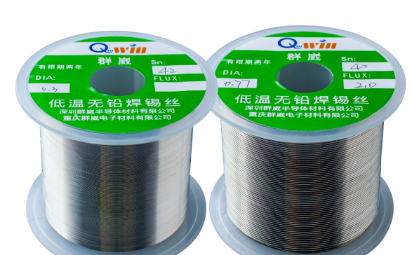 古板锡铋合金因为其脆性和延展性差未能实现松香芯形式,我司接纳特有加工工艺率先开发出的低温松香芯锡丝,线径最小可达 0.6mm。松香芯锡丝实现200℃下低温连接,适用于弱耐热电子元器件和基板的连接。